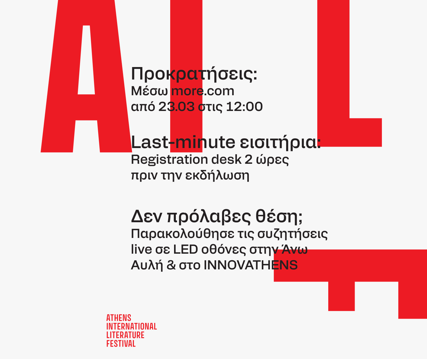 Το AILF έρχεται να προσθέσει μια νέα, φωτεινή σελίδα στην πολιτιστική ιστορία της Τεχνόπολης – μια γιορτή της λογοτεχνίας που φιλοδοξεί να γίνει θεσμός, να επιστρέφει κάθε χρόνο και να μεγαλώνει μαζί με το κοινό της